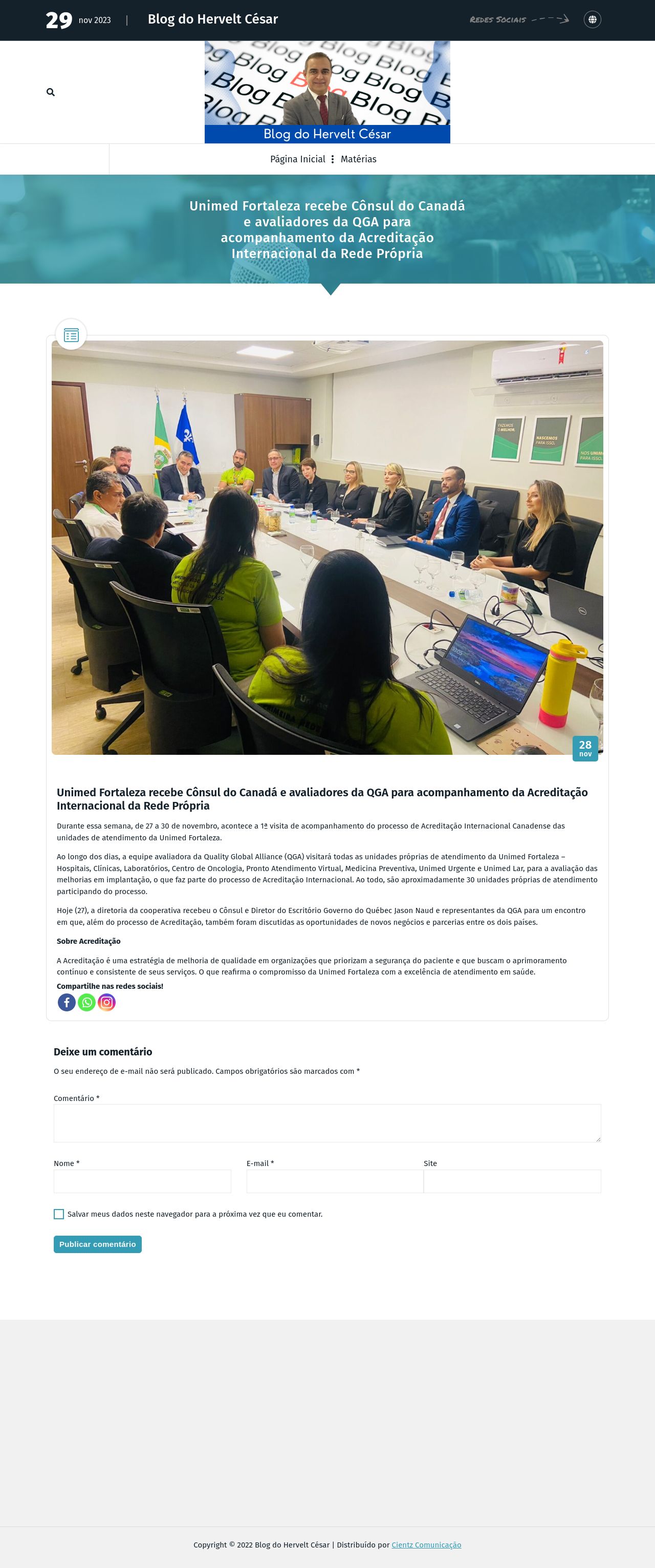 Unimed Fortaleza recebe Cônsul do Canadá e avaliadores da QGA para acompanhamento da Acreditação Internacional da Rede Própria - Blog do Hervelt César